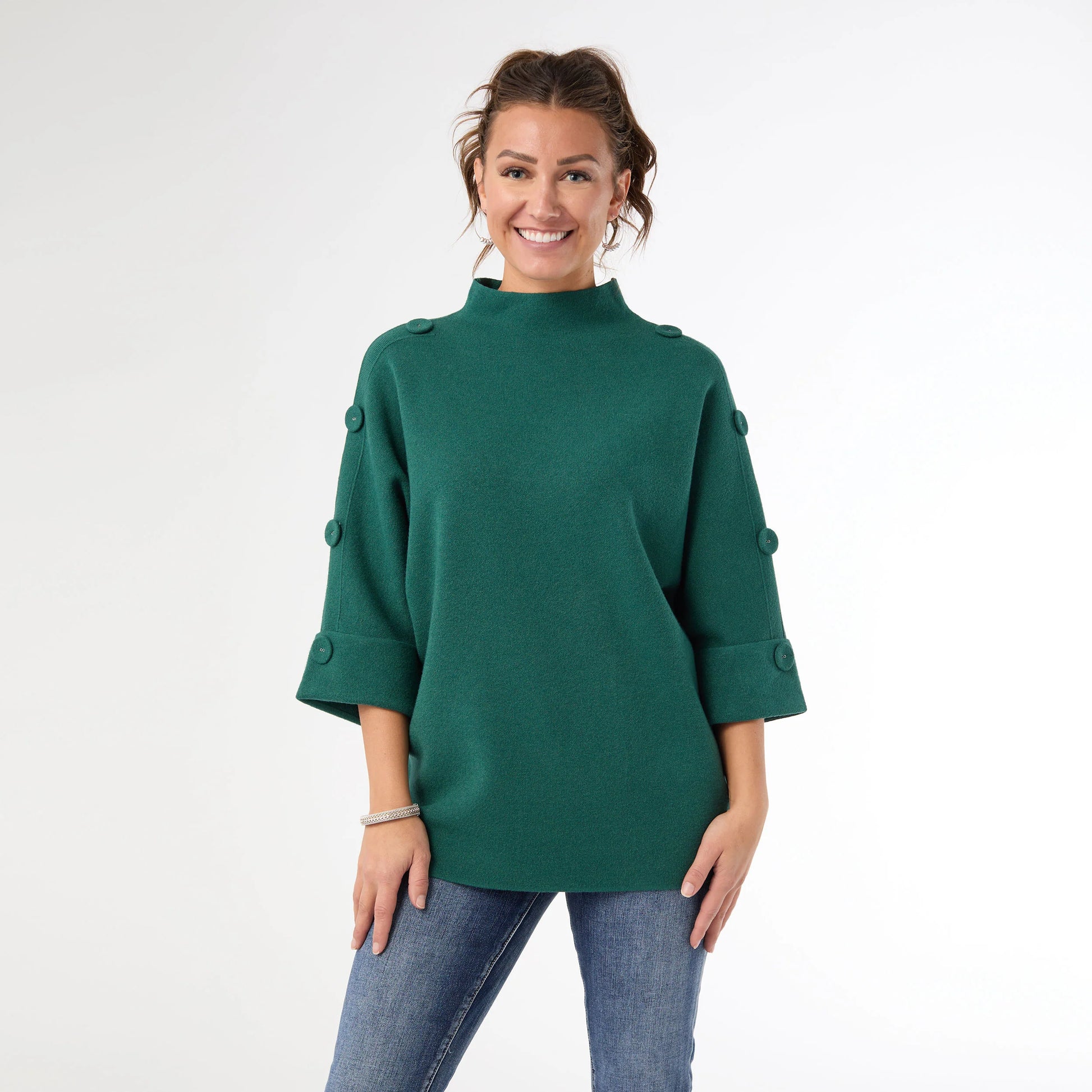 Funnel Neck Sweater with Button Detail