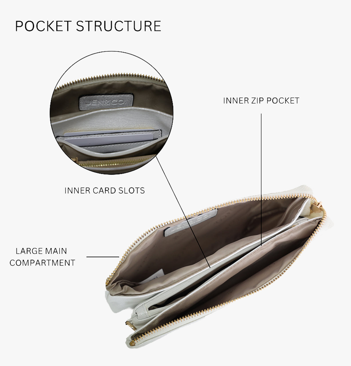 Whether worn as a crossbody for hands-free convenience or carried as a clutch for a sleek look, the Riley adapts to your style needs. Crafted from premium vegan leather, it offers both luxury and durability. The bag comes with a detachable wristlet strap and an adjustable shoulder strap, allowing for versatile carrying options.
